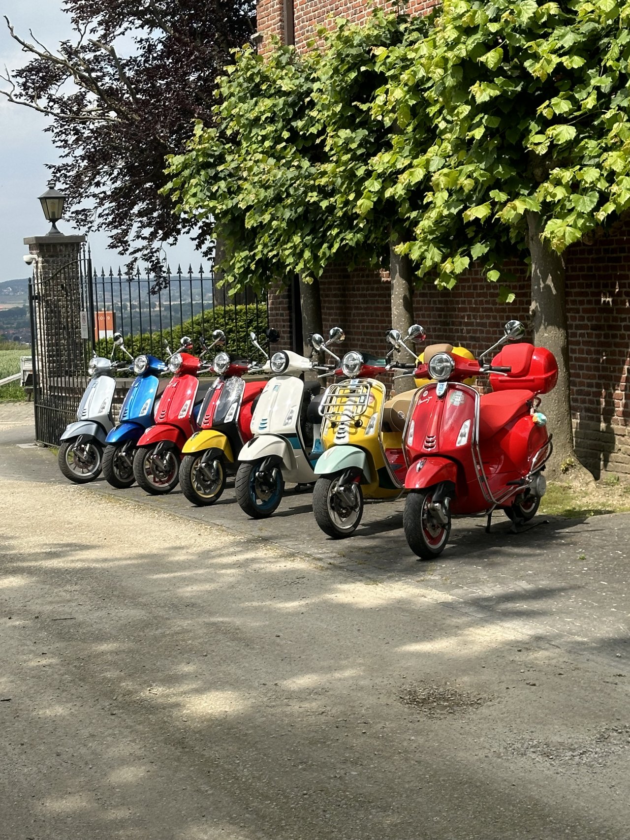 U kan de Vespa's hier online boeken. U kan gebruik maken van onze eigen catering in Bossuit, of zelf tijdens de Vesparit een leuke stopplaats kiezen. Combineer met een restaurantbezoek/ brouwerij/ museum/ maïsdoolhof/ paintball/.....